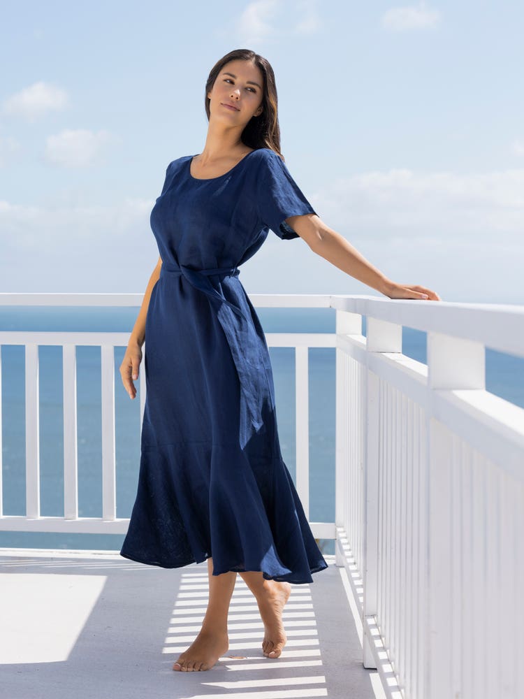 Lady Maxi hosszú ujjú elegáns vászonruha részletek