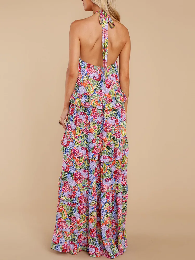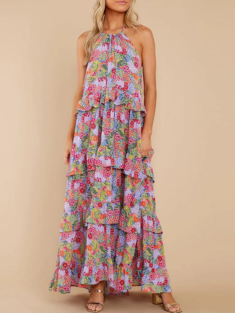 Guang Zhou liu yu női elegáns virágmintás pamut maxi ruha